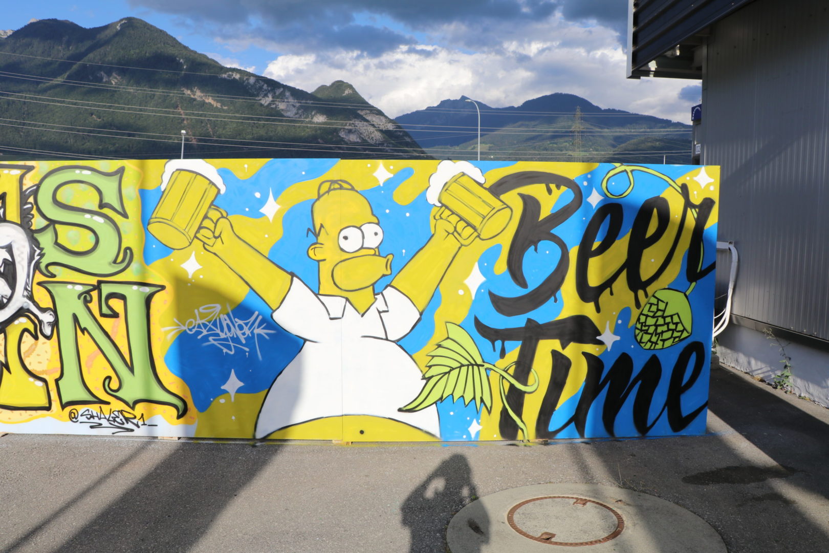 Réalisation d’une fresque murale extérieur sur le thème de la bière pour le magasin Amstein SA à Aigle dans le cadre d’un évènement live-painting avec plusieurs autres artistes locaux.